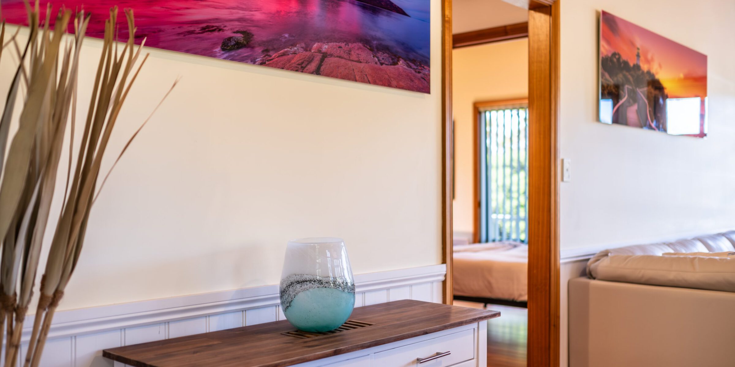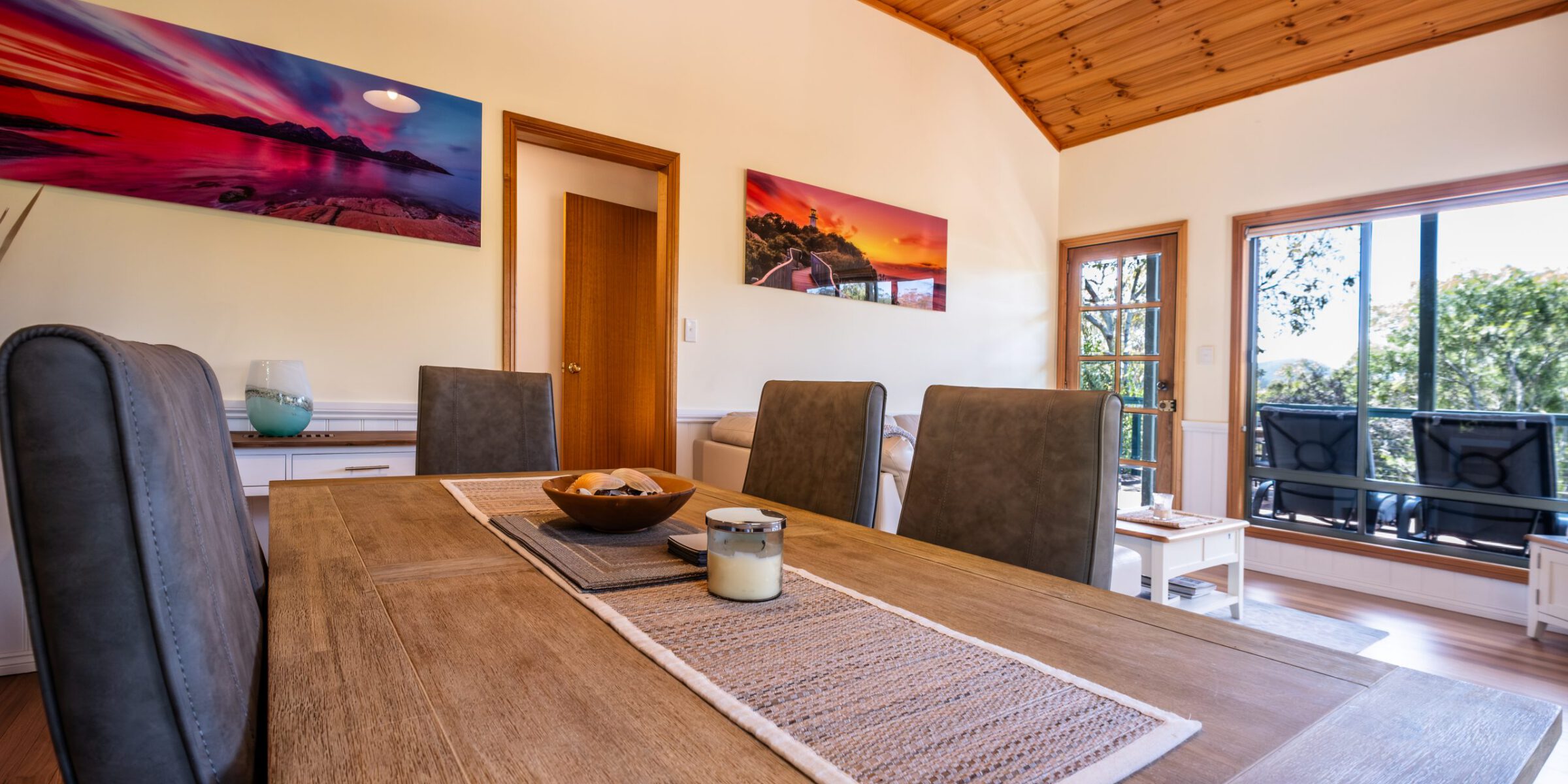 With open plan living and dining, entertaining friends and family is a breeze. The property has a beautiful gas stove & oven great for dining indoors or if you prefer a barbecue, grab some famous local seafood and indulge in alfresco dining on the spacious deck. The property is 1 minute walk to the perfect Sand Piper beach and 5 minute drive to the Freycinet National Park. Shops and restaurants are located only 5 minutes drive from the property along with all the local tourist attractions including, The Freycinet Marine Farm, Freycinet Kayaks, Wineglass Bay Cruises, The Friendly Beaches and many more. If your idea of a holiday is relaxing in complete serenity, exploring various beaches and eating some of Tasmania’s finest produce, then Freycinet Retreat is the place for you. With private off street parking for 3 cars, multiple lounge rooms, reading nooks, outdoor baths, sun drenched decks & world class scenery, Freycinet Retreat will not disappoint. Freycinet Retreat is a new listing so be quick to book ahead for school holidays and especially your summer escape!