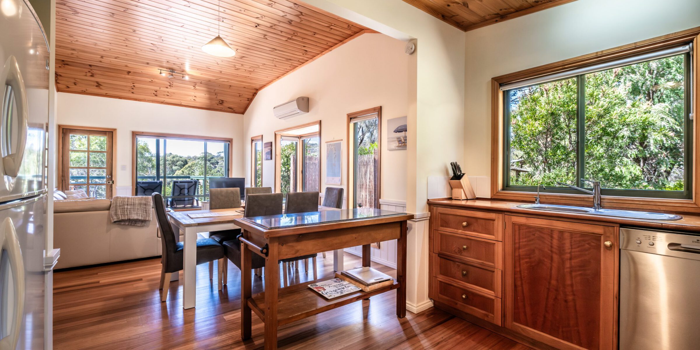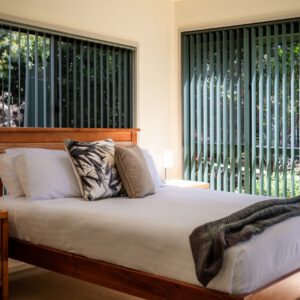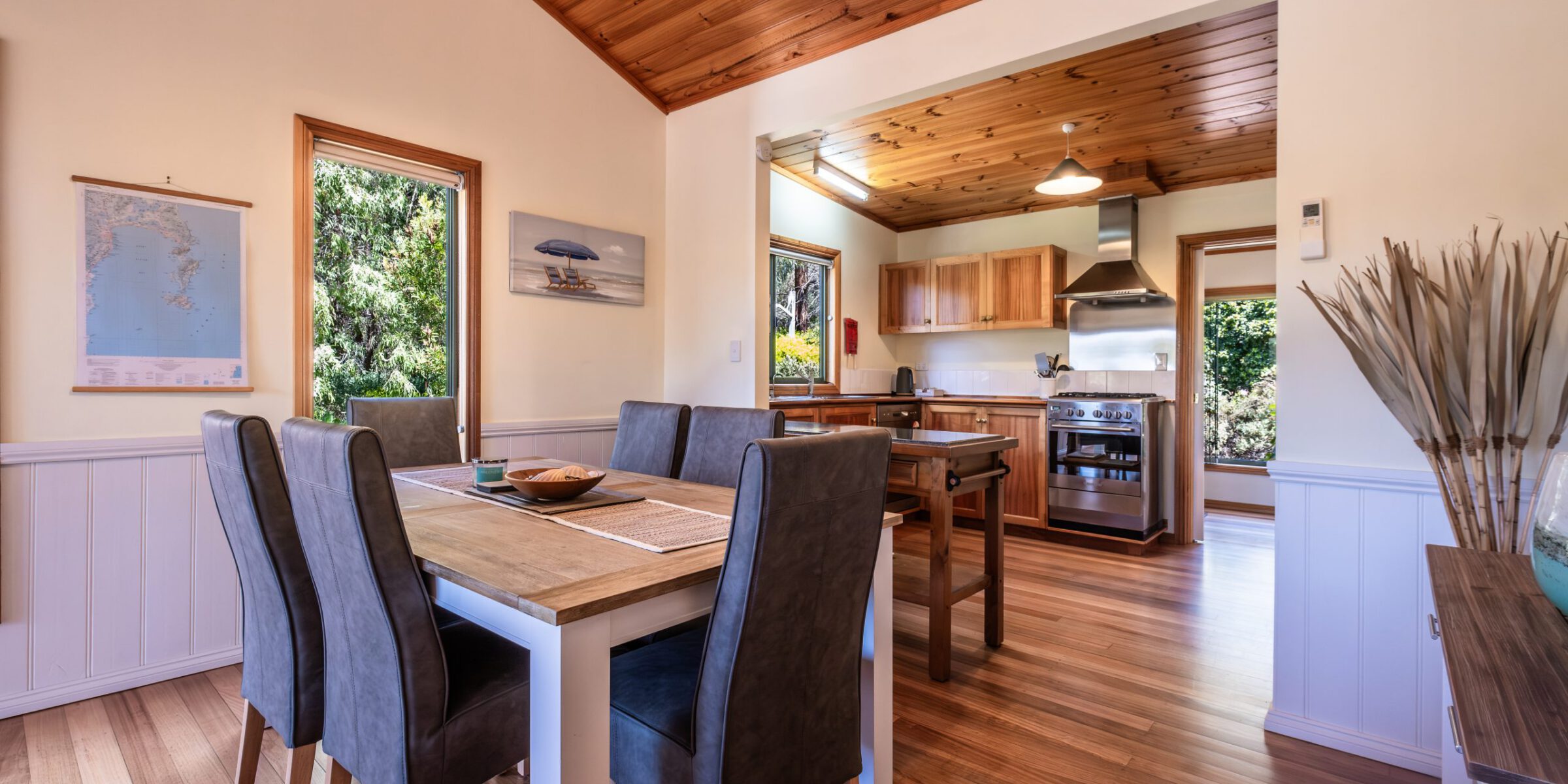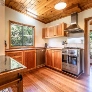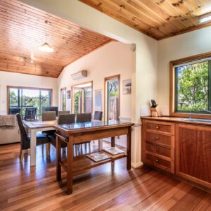 The 2 bedroom property sleeps 4 and has one generous bathroom and 2 toilets, making it easy to entertain a family or a romantic getaway for couples. The property has a huge deck which captures all day sun along with the perfect day bed to relax or sit with a wine after a long day exploring Freycinet National Park. With added luxury of the outdoor bath and shower which has to be experienced as you are surrounded by towering native trees with a view of the starry night sky. Freycinet Retreat is truly a beautiful and relaxing property.