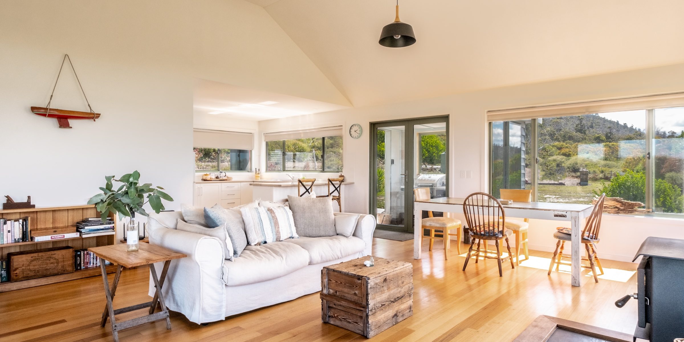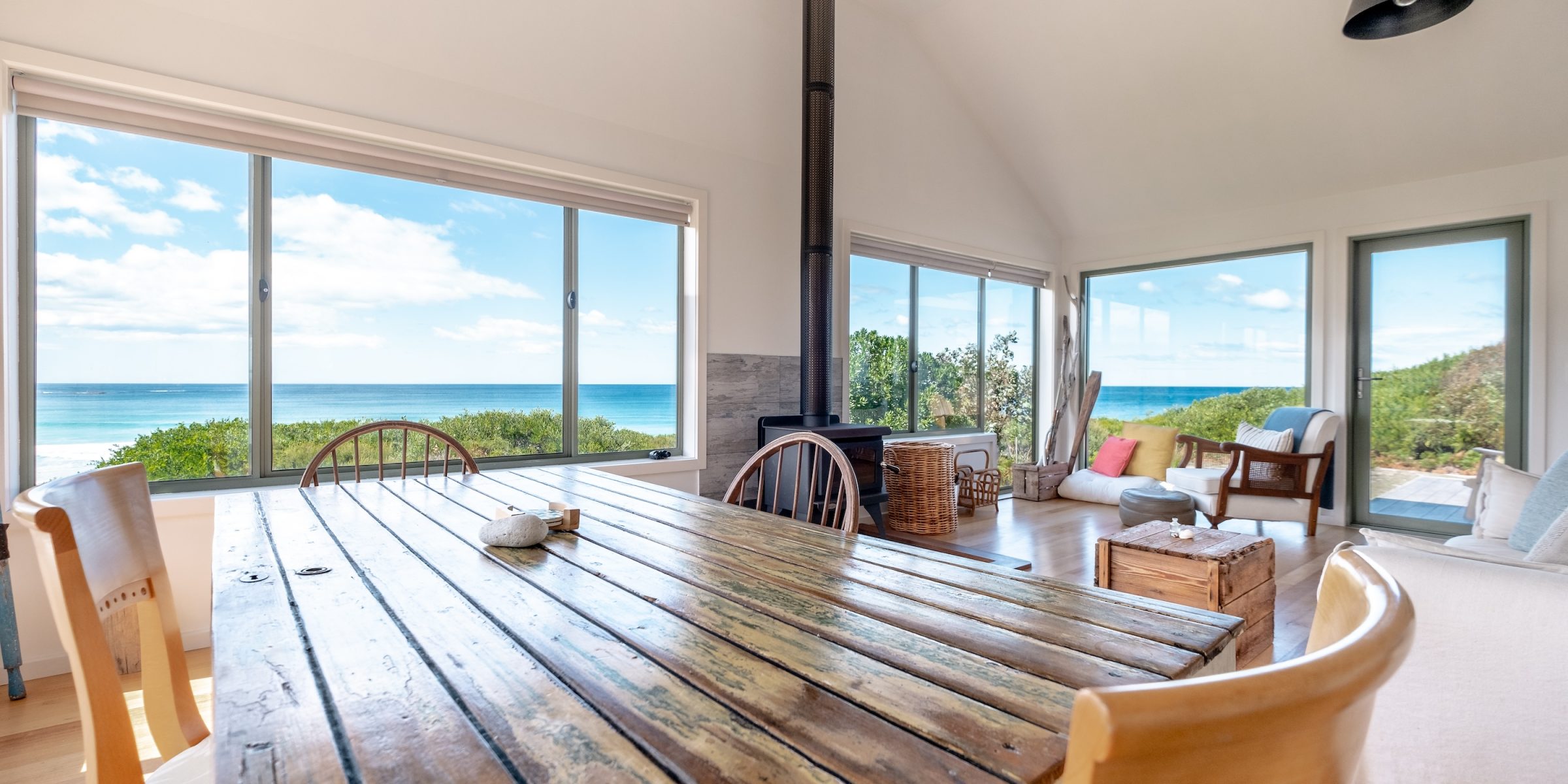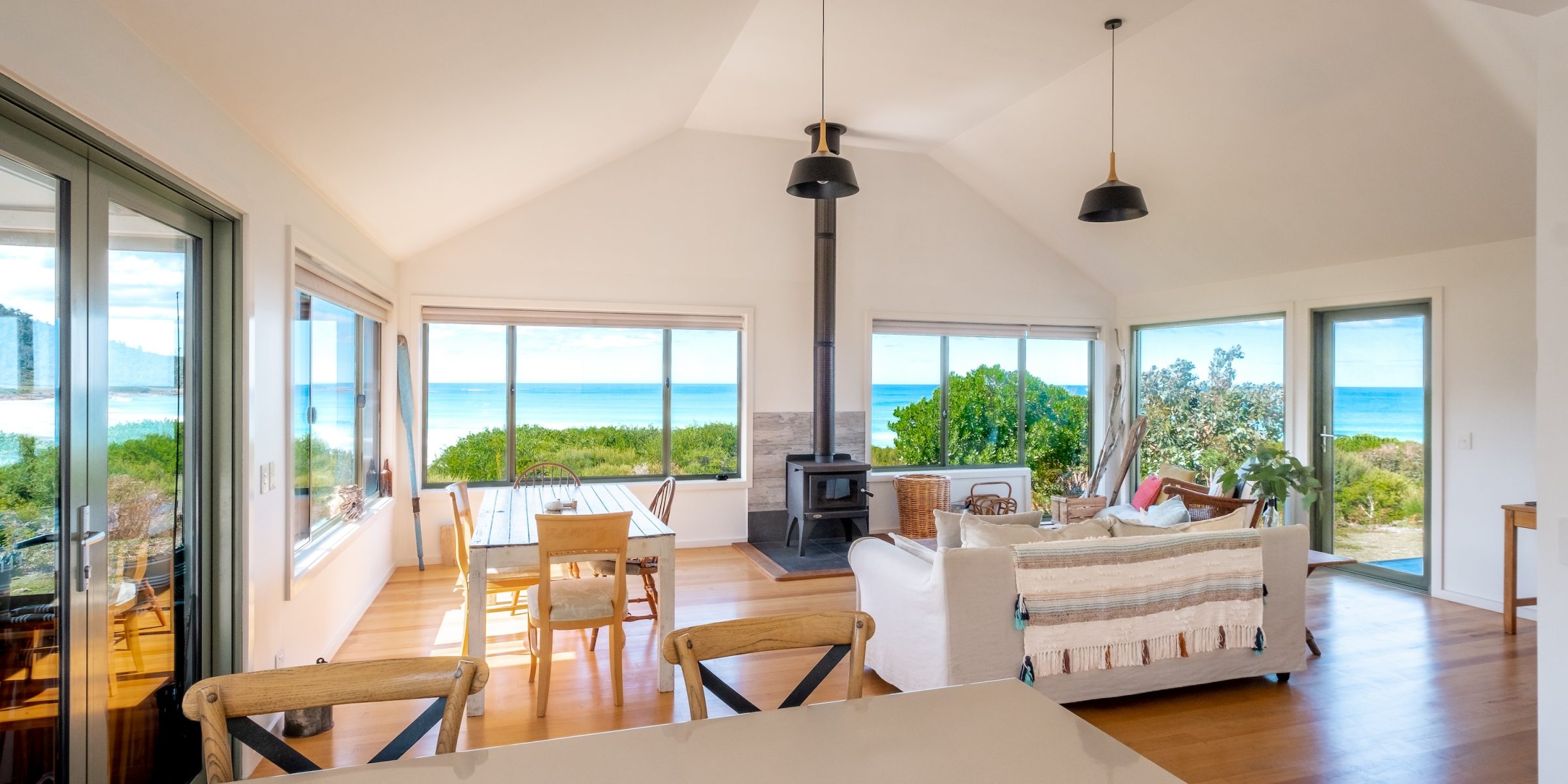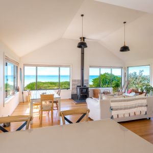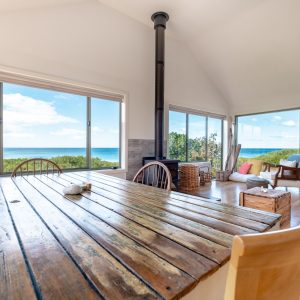 From your door step there are two private walking tracks to the beach which more often than not you will have completely to yourself. Enjoy, walking the beach, fishing for flathead, surfing or sunbaking right in front of your property without being disturbed. Silvermoon is completely private which makes the ideal getaway for couples to enjoy and relax. The open plan living/kitchen is so inviting with its spacious area to relax, and added bonus of a wood heater to create a warm ambience on cooler days and nights.