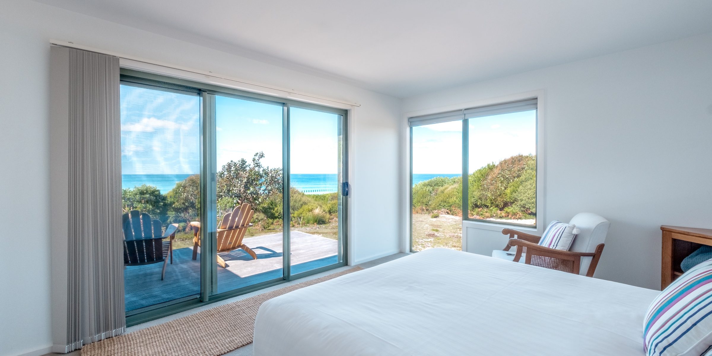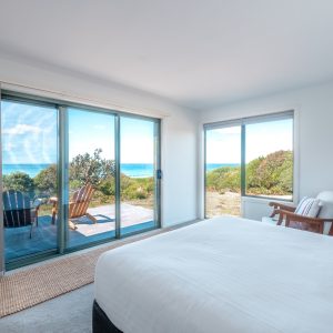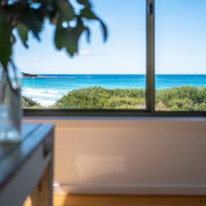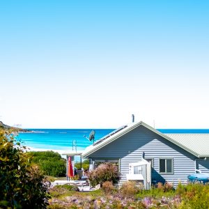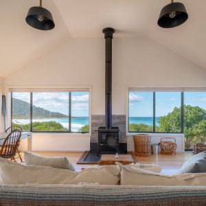 The kitchen provides all the appliances you will need when cooking with Bicheno’s famous seafood and produce. The bathroom has a modern spacious walk-in shower and there is a separate toilet. The property has one bedroom with a queen bed, so lay back and enjoy the glorious uninterrupted views of the beach and ocean from your bed. Wifi internet is also available. Access to the property is via a gravel road through 6km of the Freycinet National Park in Bicheno.