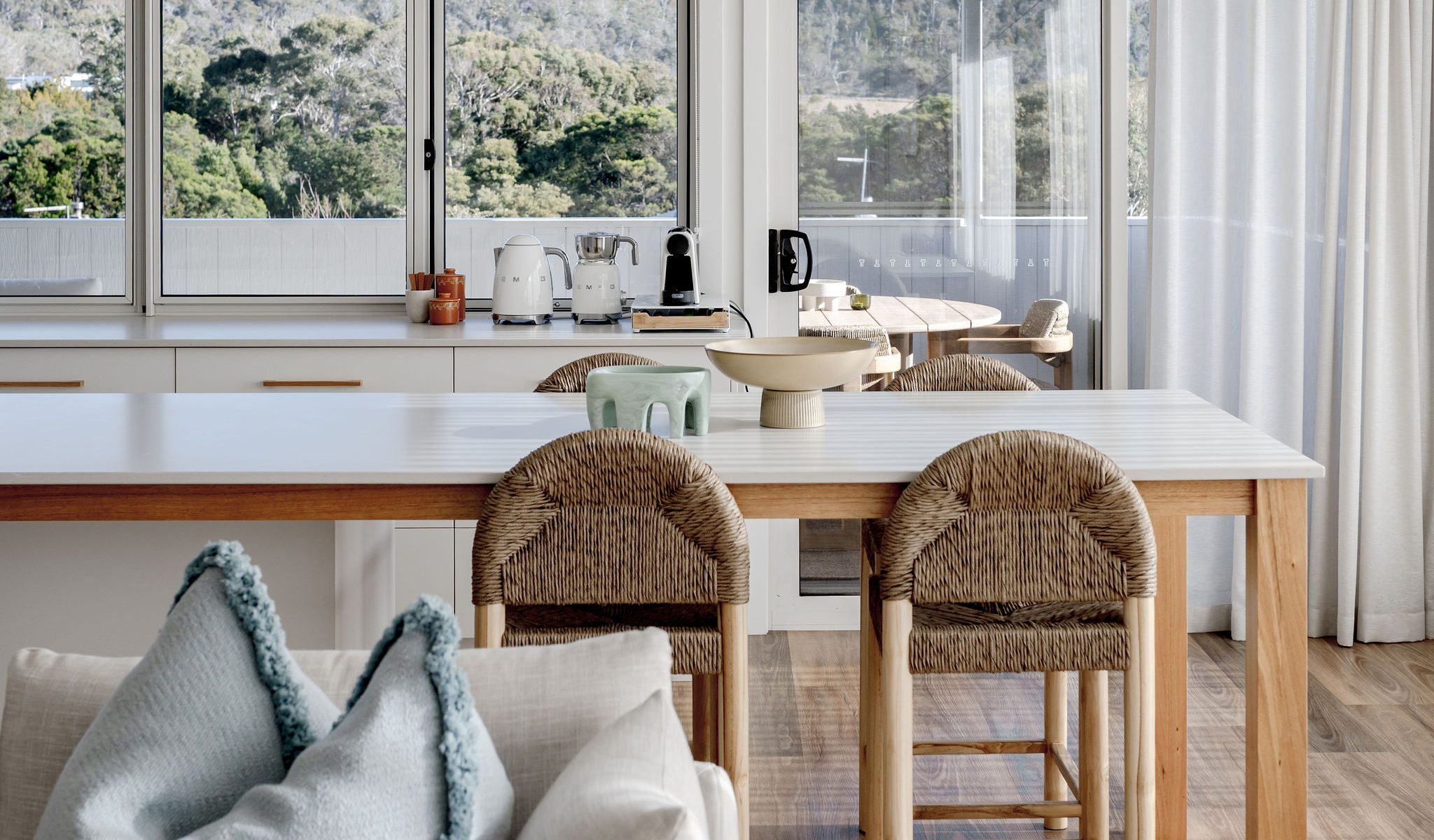 From the kitchen you will be able to enjoy the undercover outside deck where you will be able to enjoy a wine matched with the regions local produce looking towards Diamond Island and Redbill Beach. The house is equipped with all of the latest kitchen appliances making entertaining effortless. The property is on a flat block with a fenced off grassy backyard which includes an outdoor shower to rinse off from your walk back from the beach.