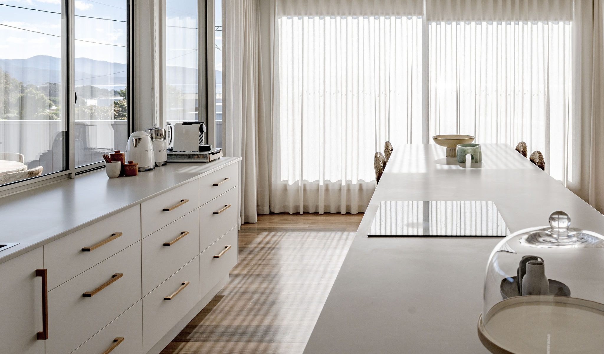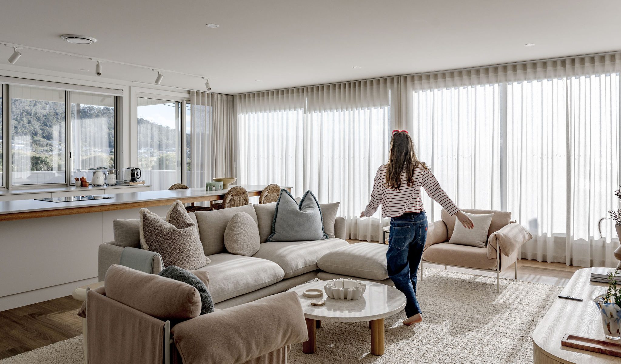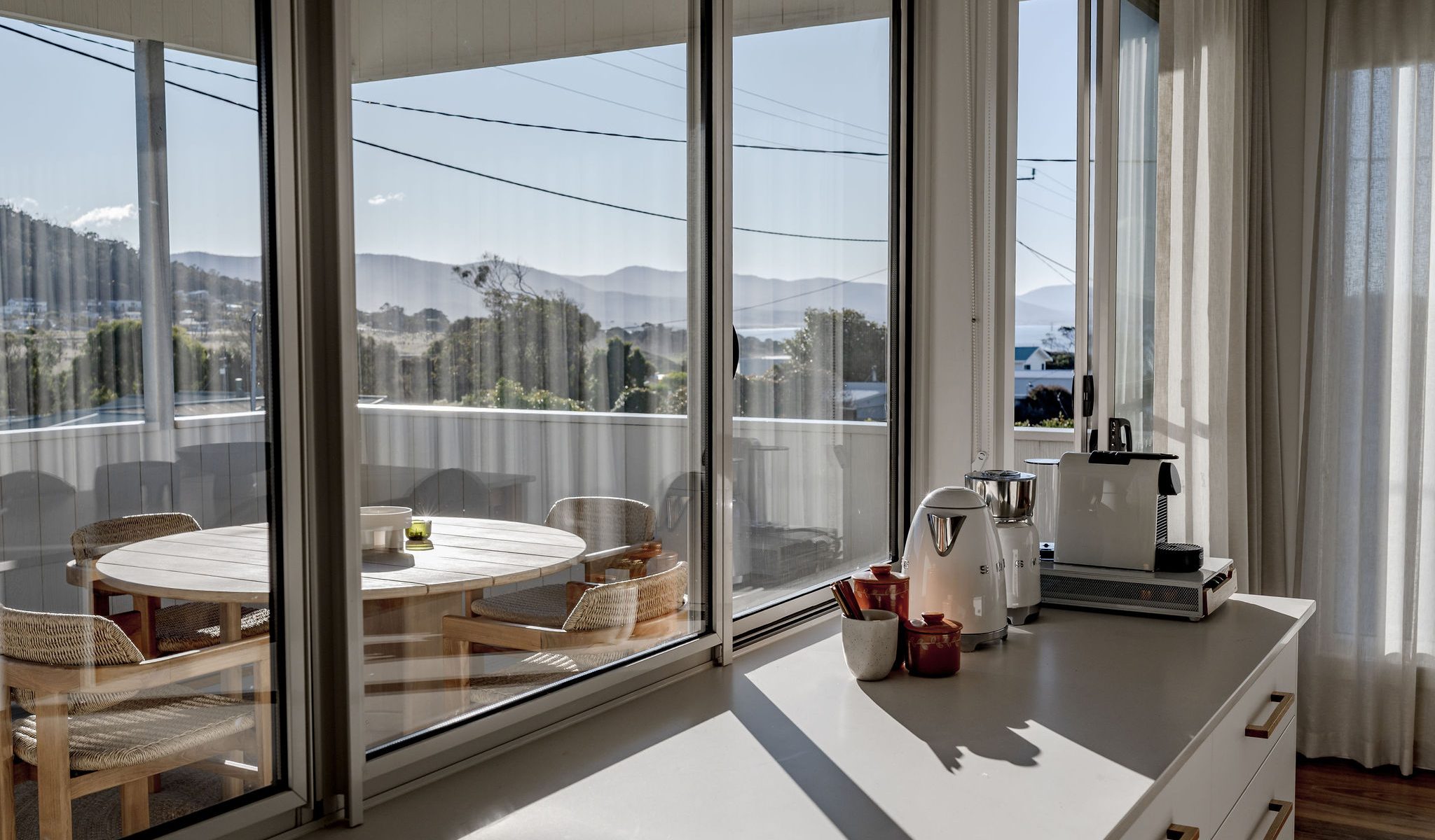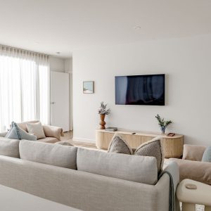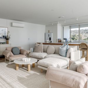 Furthermore, the entire house has been interior decorated and styled from top to bottom with no expense spared. Solara can sleep up to 4 guests in both comfort and style. The master bedroom is upstairs with its own ensuite facing north east so the morning sun will flood into the bedroom. The guest bedroom is downstairs upon entry into the house with its own lounge space and ensuite. As you enter the upstairs you will notice how the spacious living room flows effortlessly into the kitchen with stunning views.