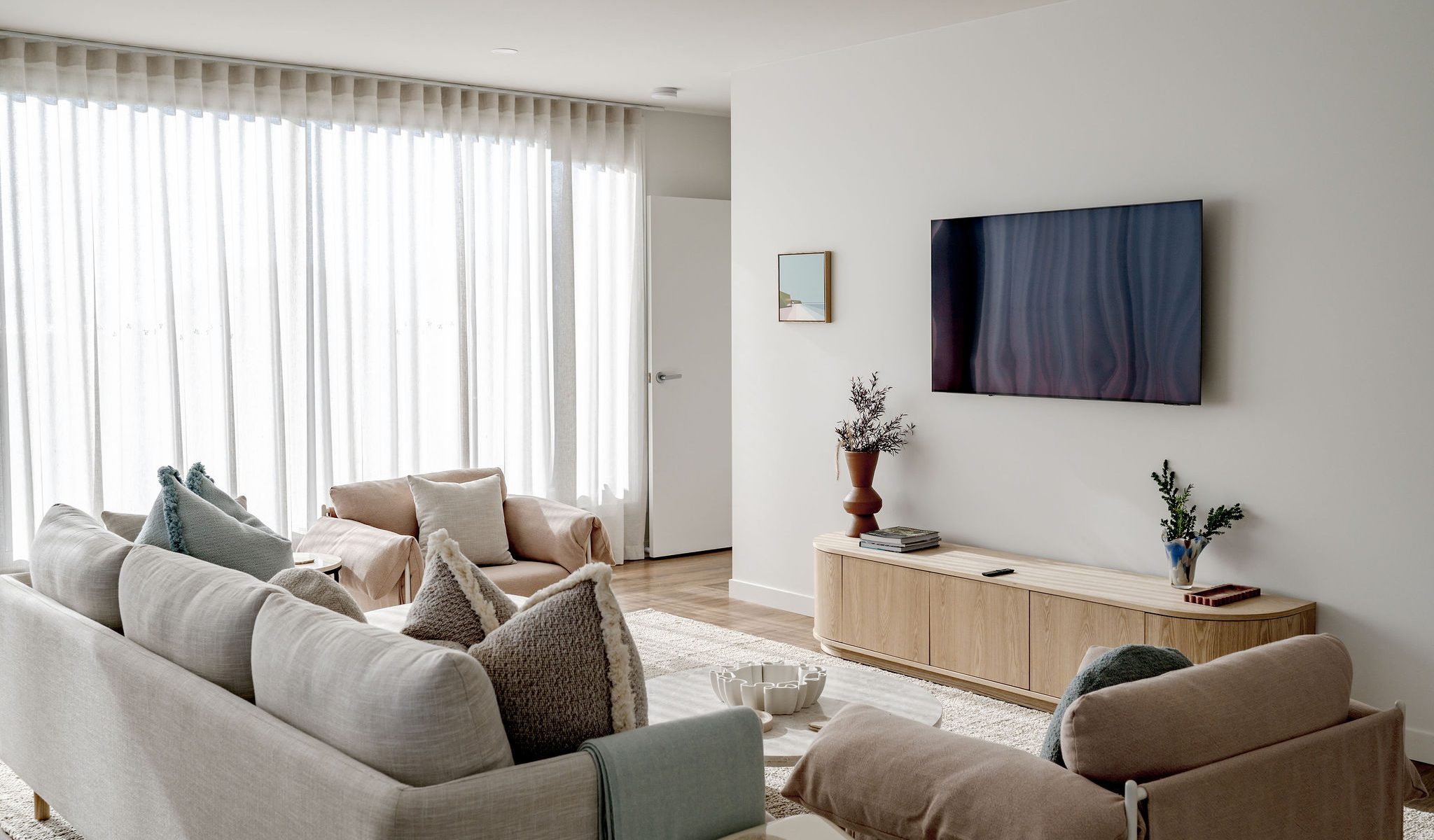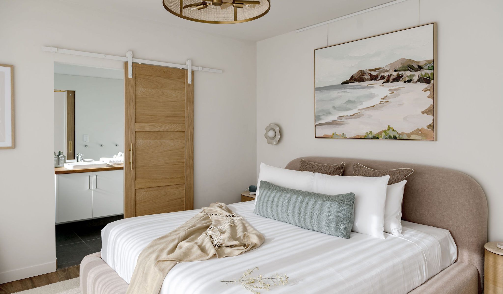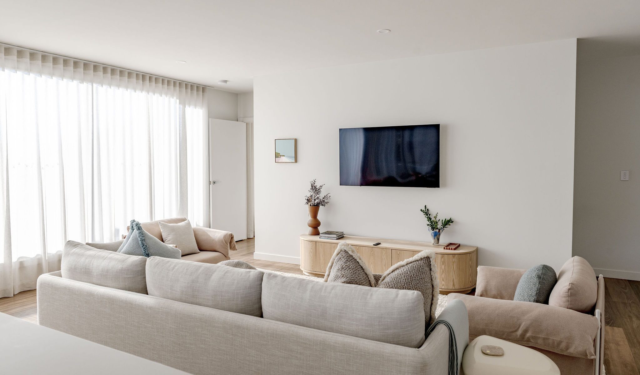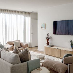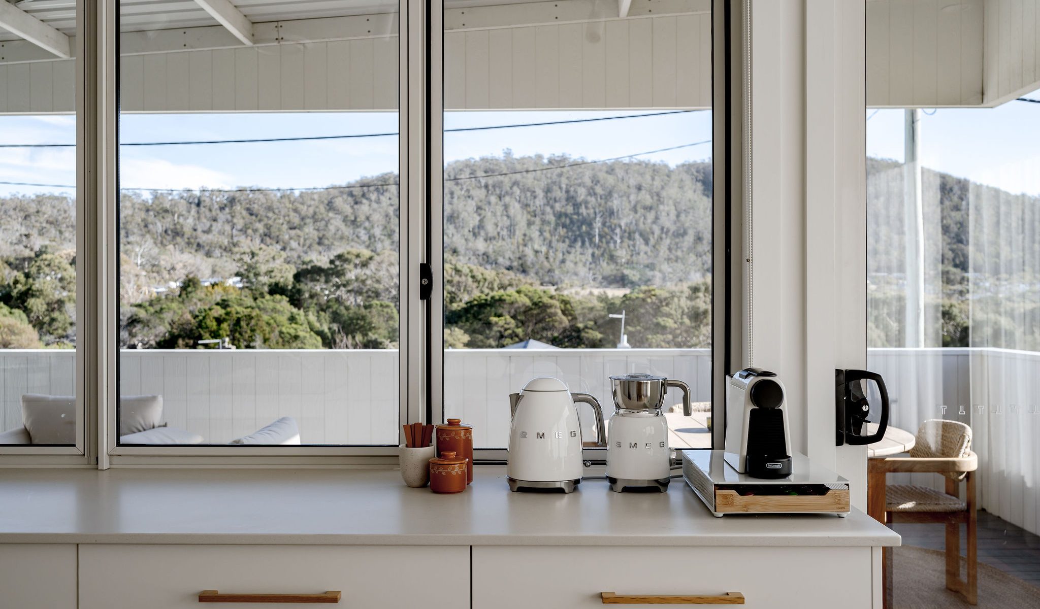 Furthermore, the entire house has been interior decorated and styled from top to bottom with no expense spared. Solara can sleep up to 4 guests in both comfort and style. The master bedroom is upstairs with its own ensuite facing north east so the morning sun will flood into the bedroom. The guest bedroom is downstairs upon entry into the house with its own lounge space and ensuite. As you enter the upstairs you will notice how the spacious living room flows effortlessly into the kitchen with stunning views.
