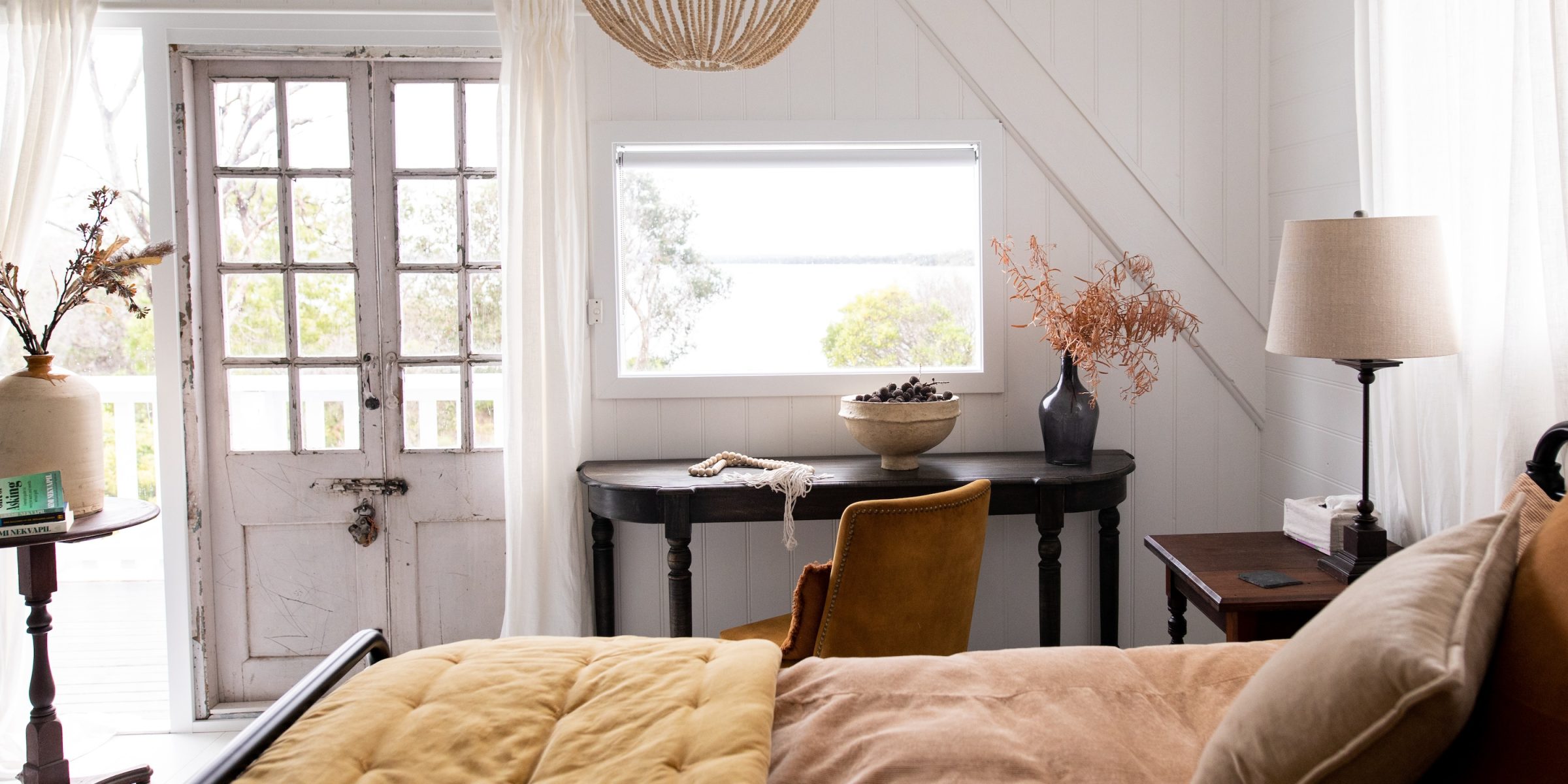 Book NowThe Reads is a rustic yet inviting structure adorned with weathered cedar boards and driftwood accents filled with a library of books for your enjoyment while staying. A wraparound porch, complete with comfortable wicker chairs, provides the perfect spot to soak in the breathtaking river views and enjoy the gentle sea breeze. The heart of the house is the open-concept living area, featuring exposed wooden beams, reclaimed hardwood floors, and a vaulted ceiling. Oversized windows flood the room with natural light, framing the river like a work of art. A cosy fireplace, flanked by comfy sofas and plush, nautical-themed cushions, invites you to unwind with a book or gather around for conversations. Each of the bedrooms is a tranquil sanctuary. Whitewashed walls and crisp linens are complemented by driftwood-inspired furnishings and handwoven rugs. Oversized windows offer glimpses of the river and the lush surrounding landscape. The master suite features stunning river views, offering a luxurious touch. The bathrooms continue the rustic yet elegant theme, with subway-tiled showers, custom driftwood vanities, and sea glass accents. Barn-style sliding doors add a touch of authenticity. The outdoor spaces are designed for relaxation and outdoor entertainment. A wooden deck extends from the porch, providing ample space for lounging and al fresco dining. A path leads down to a secluded beach, where you can swim, kayak, or simply bask in the sun. Throughout the house, nautical-themed decor and carefully curated vintage finds enhance the rustic elegance. Handwoven throws and plush cushions add warmth and comfort to every corner. Escape to The Reads, where the absence of a television is a deliberate invitation to unwind and connect with the tranquillity of our serene surroundings. The Reads seamlessly blends the rugged beauty of the beach community with elegant design and thoughtful details, creating a retreat that invites you to savour the simple pleasures of coastal living. It’s a stylish shack where you can unwind, connect with nature, and make cherished memories with loved ones by the on the shore of the Swan River located on your doorstep.