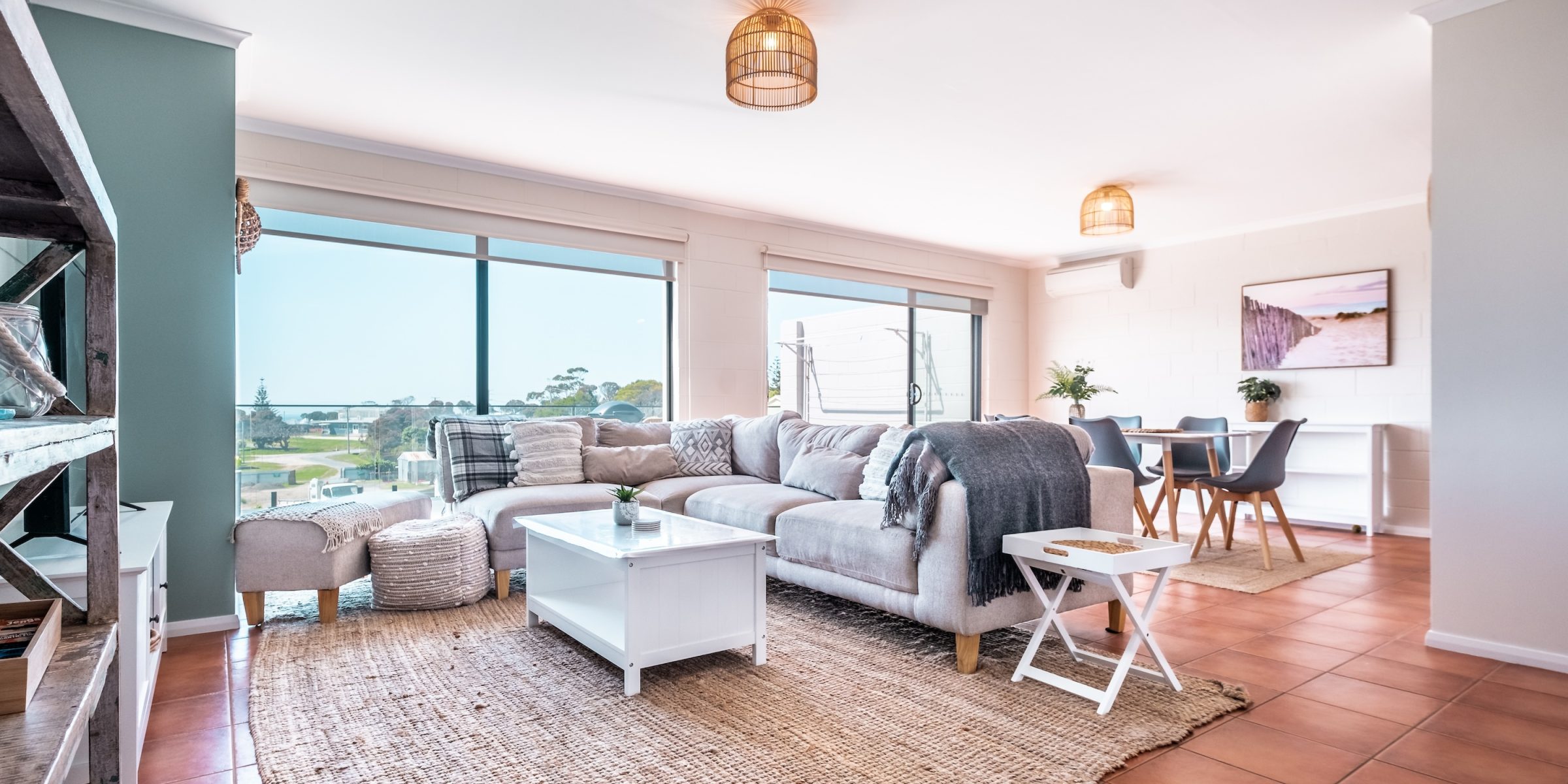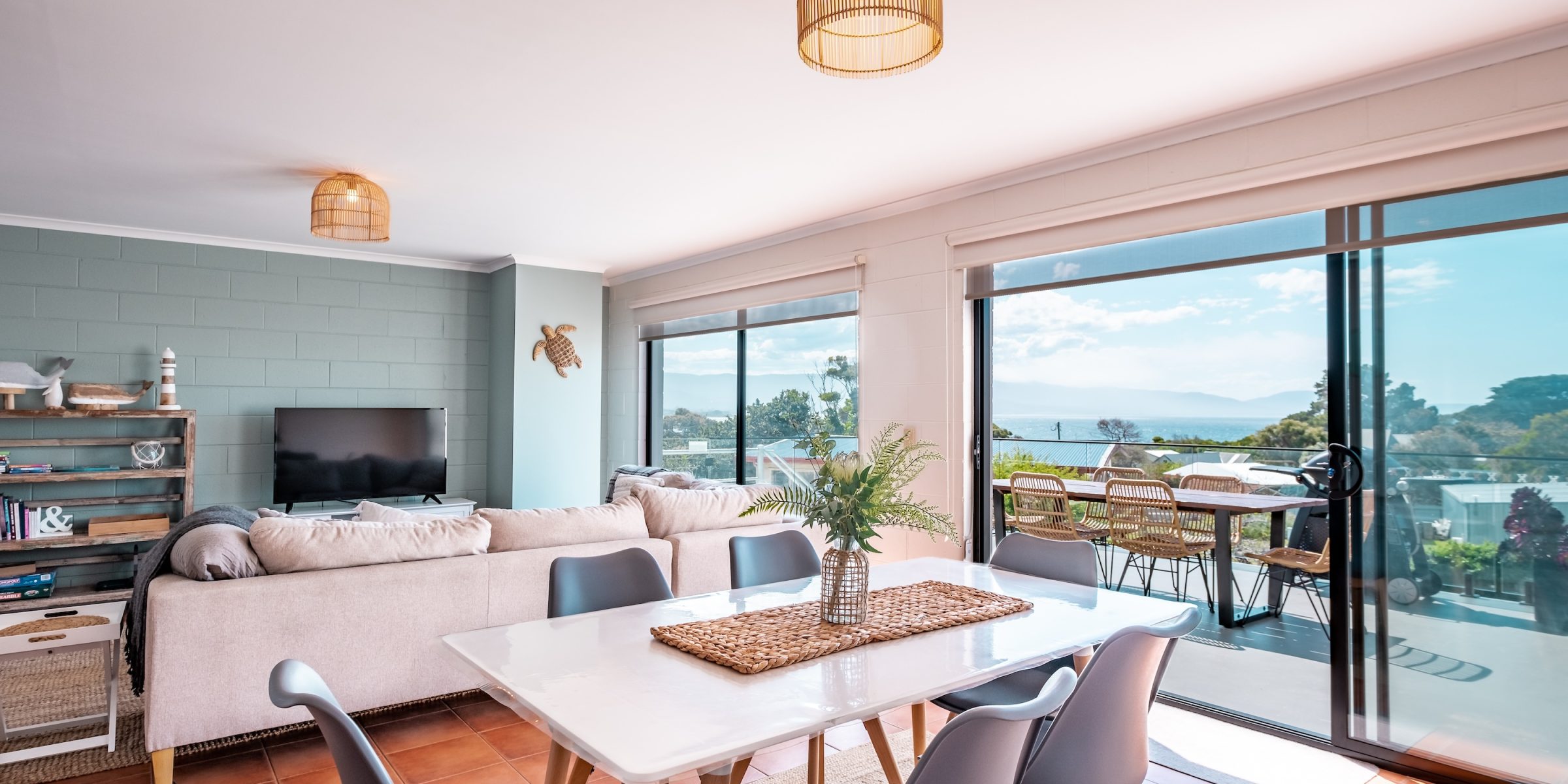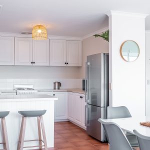 This is a great family unit situated in the heart of the small shopping centre of Bicheno. A beautifully fitted out 3 bedroom unit, upstairs,  creating a beachside ambiance with thoughtful décor to fit in with its beautiful beaches and surrounds.