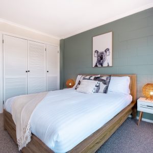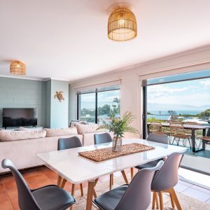 The bed configuration consists of 1 King 1 queen and 2 sets of bunks…..that sleeps 8….. The fully functional kitchen, will perfectly serve guests stays and families… Relax in the open plan living/dining and enjoy that sea view overlooking Waub’s Bay and the crystal waters beyond, that our beautiful East Coast presents…. Or chill out on the spacious upstairs deck…with nibbles and your favourite wine. Come and enjoy that experience that Unit 1/41 Foster Street will present.