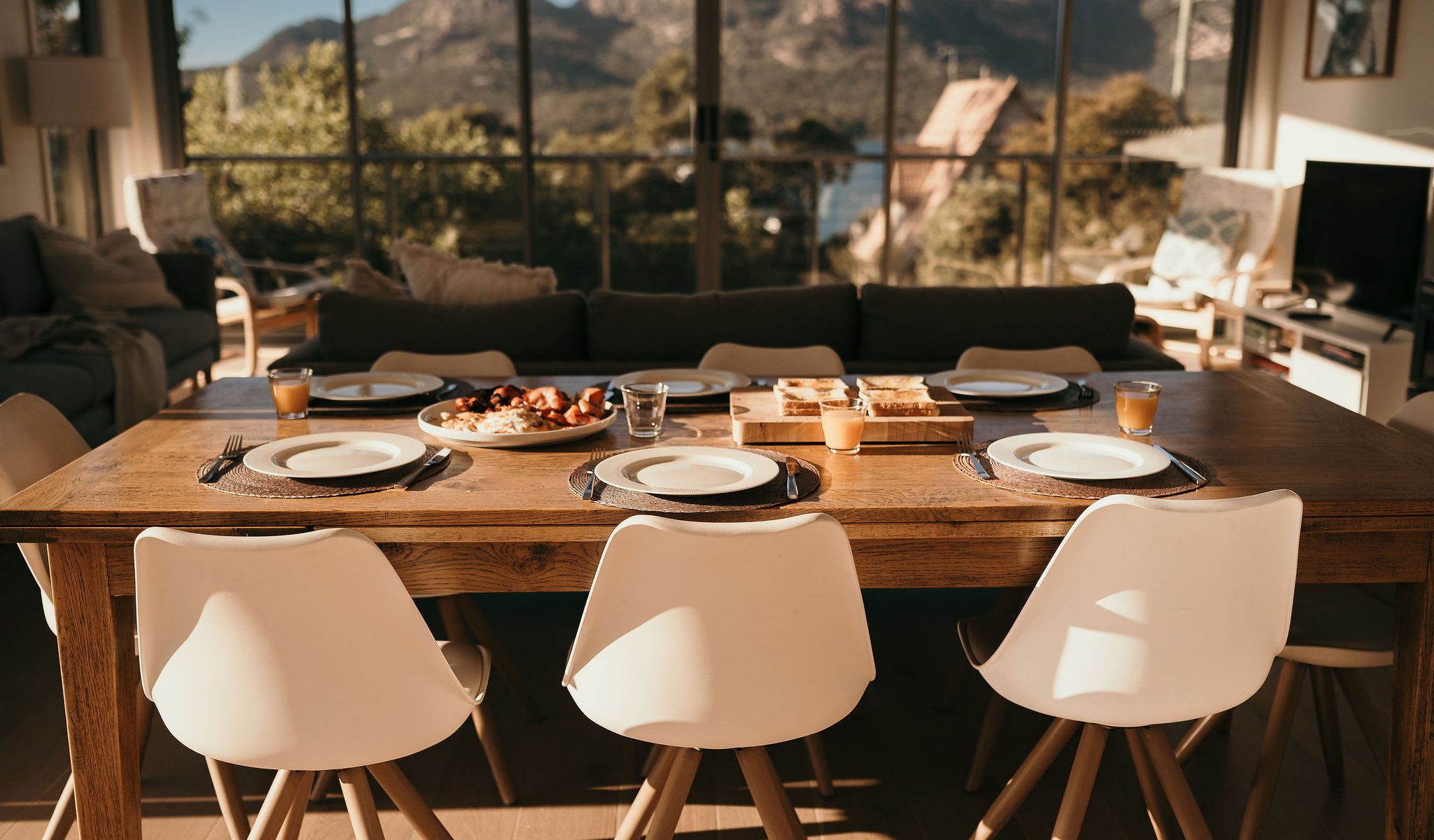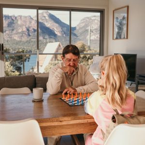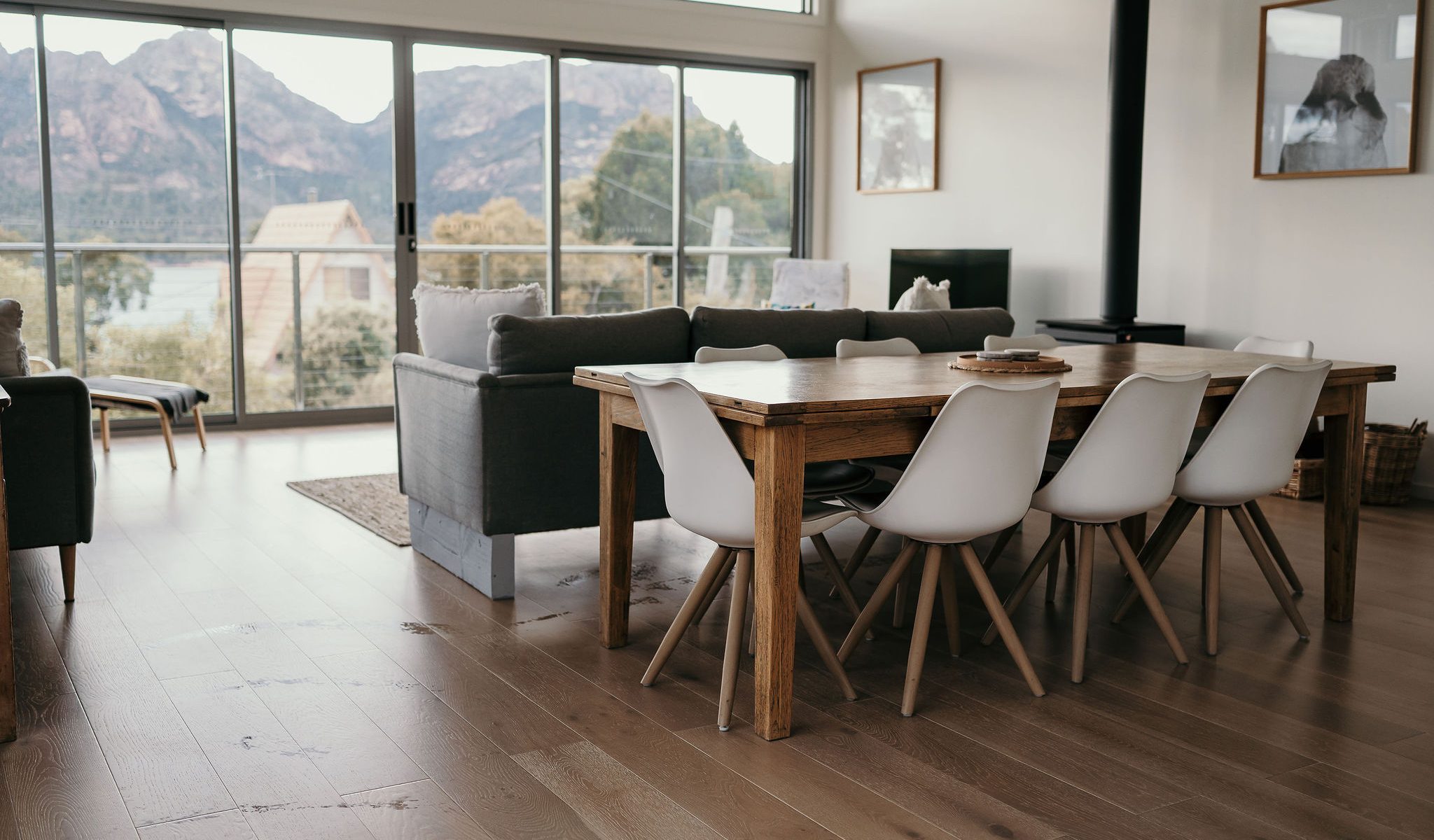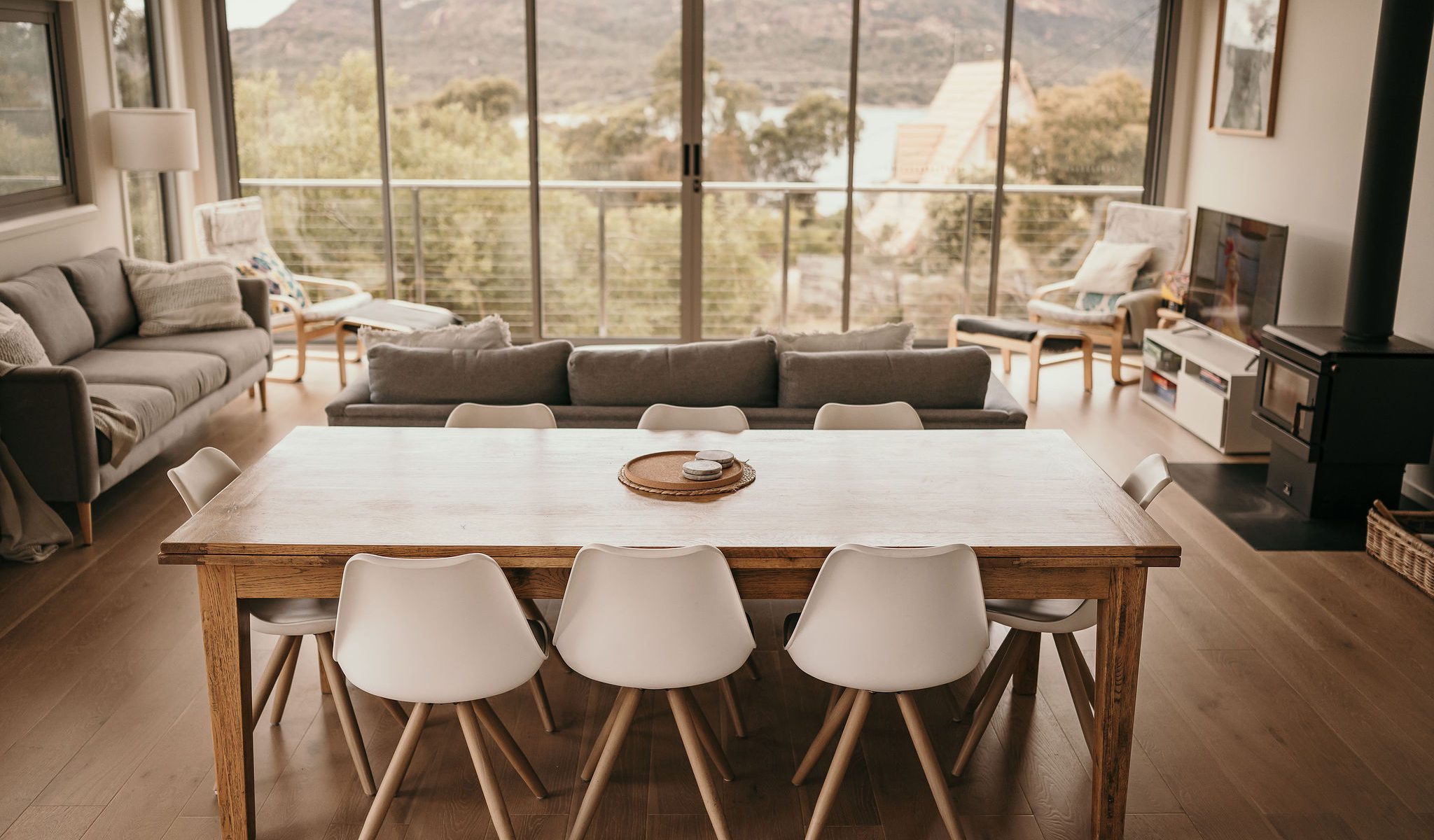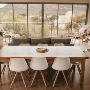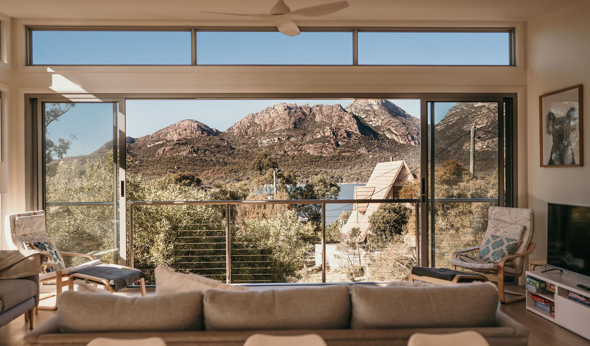 Located in the heart of Coles Bay and right on the edge of Freycinet National Park, The Tides offers stunning views across Coles Bay and the famous Hazard Mountains at the front of the house, with huge picture windows to highlight this view.