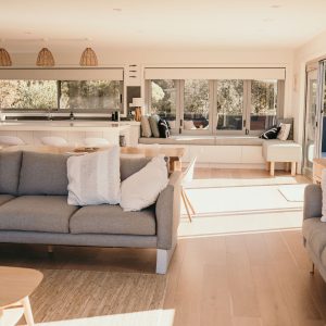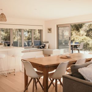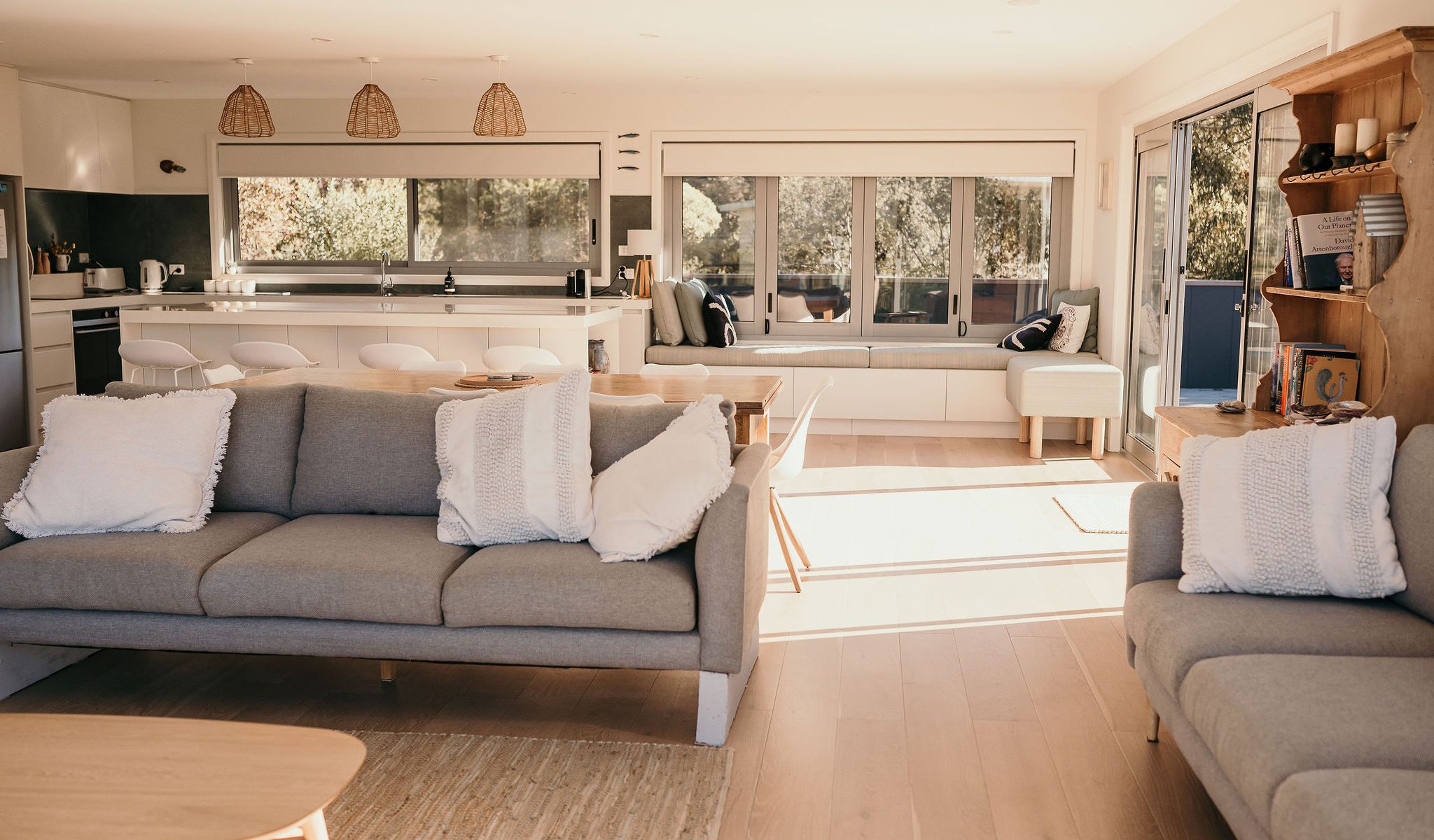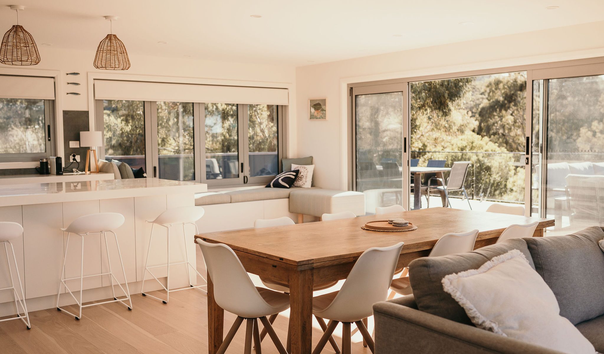 The outlook to the east is just as spectacular, with unimpeded views across the national park. The large deck wraps around to make the most of all aspects, with outdoor lounges and window seats to guarantee cosy places to soak up the sun all day. This is a two storey property where most of the living area, kitchen and bedrooms are located upstairs. This has been newly renovated with a stylish, beachy feel.