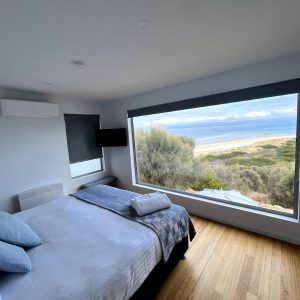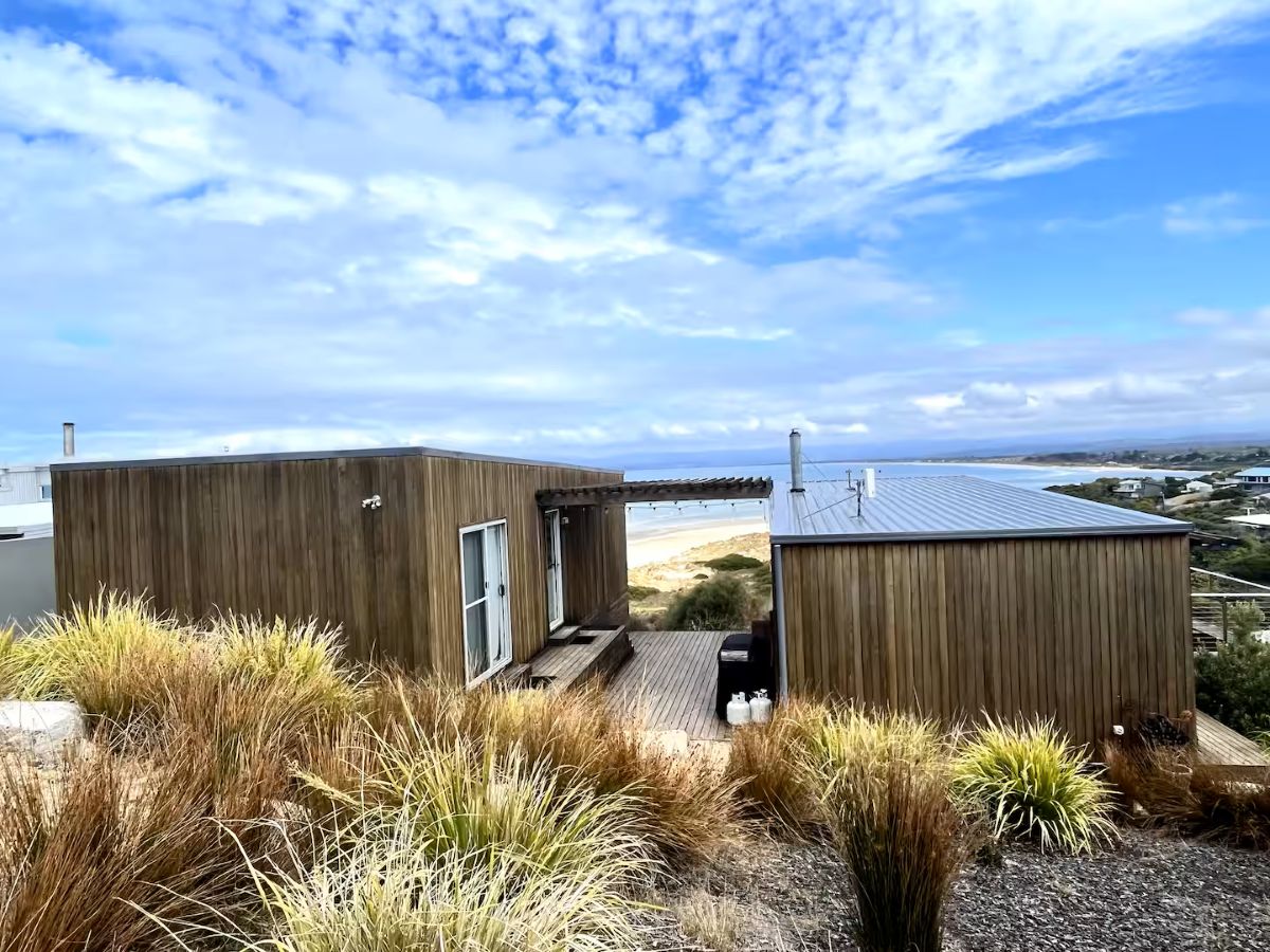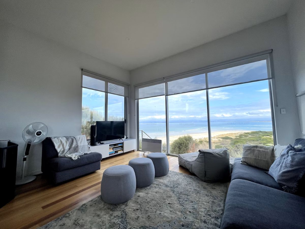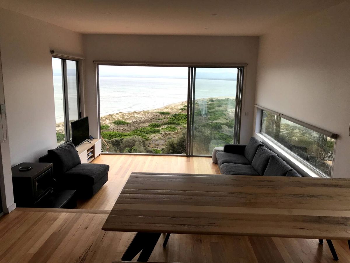 Book NowThe first architecturally designed pod includes a fully equipped kitchen, dining & lounge room. All of these spaces have majestic views of the famous Sandpiper Beach and Great Oyster Bay. You can relax on the huge couch that overlooks the water or enjoy some of the local wines on either of the three decks. The second pod includes three generous size bedrooms and a large bathroom.
