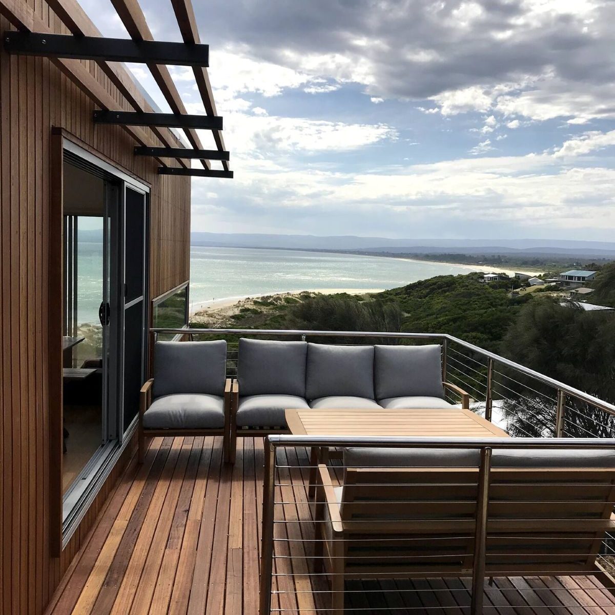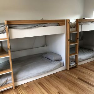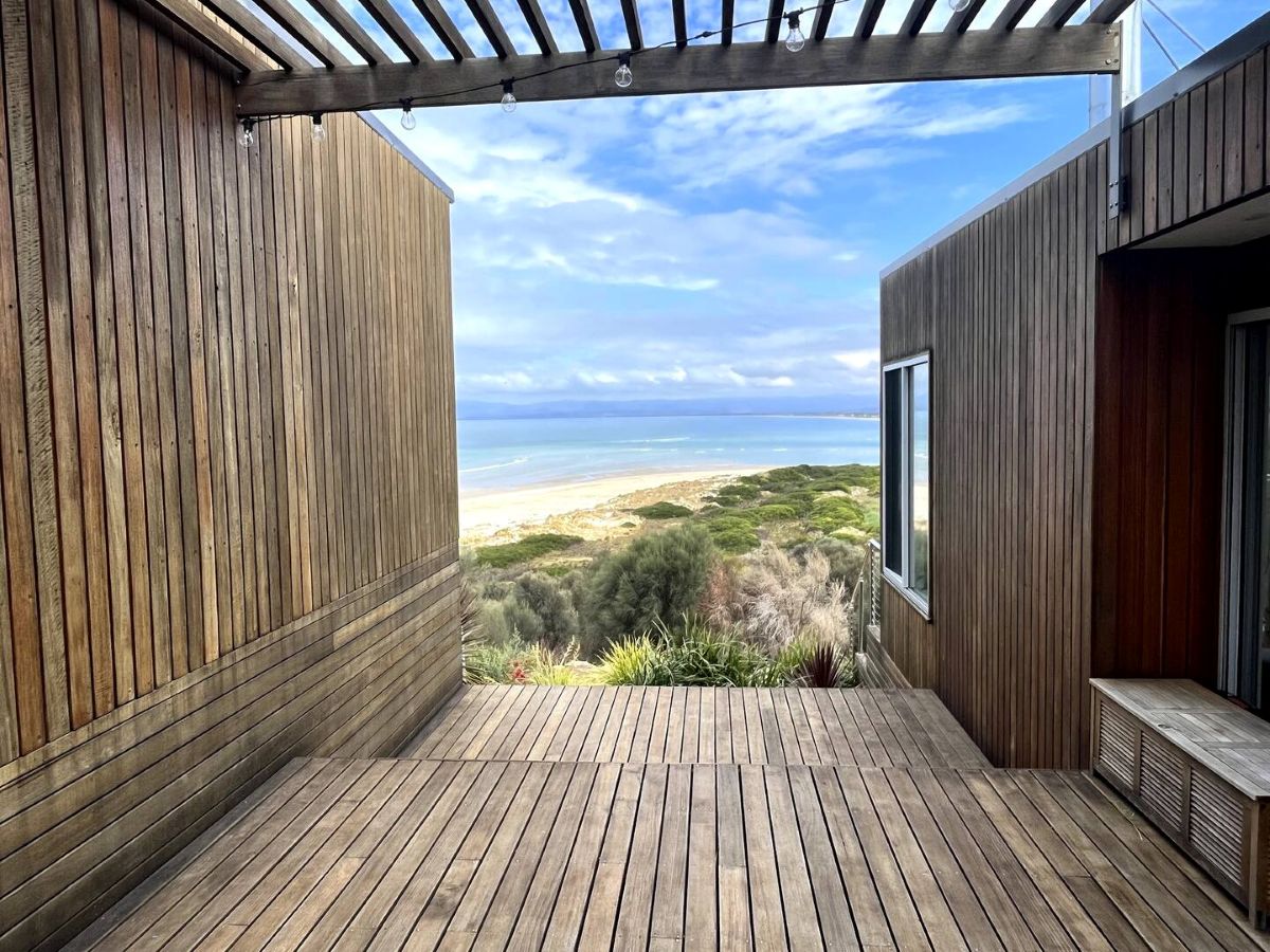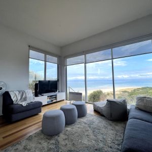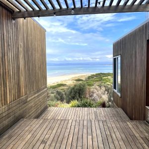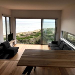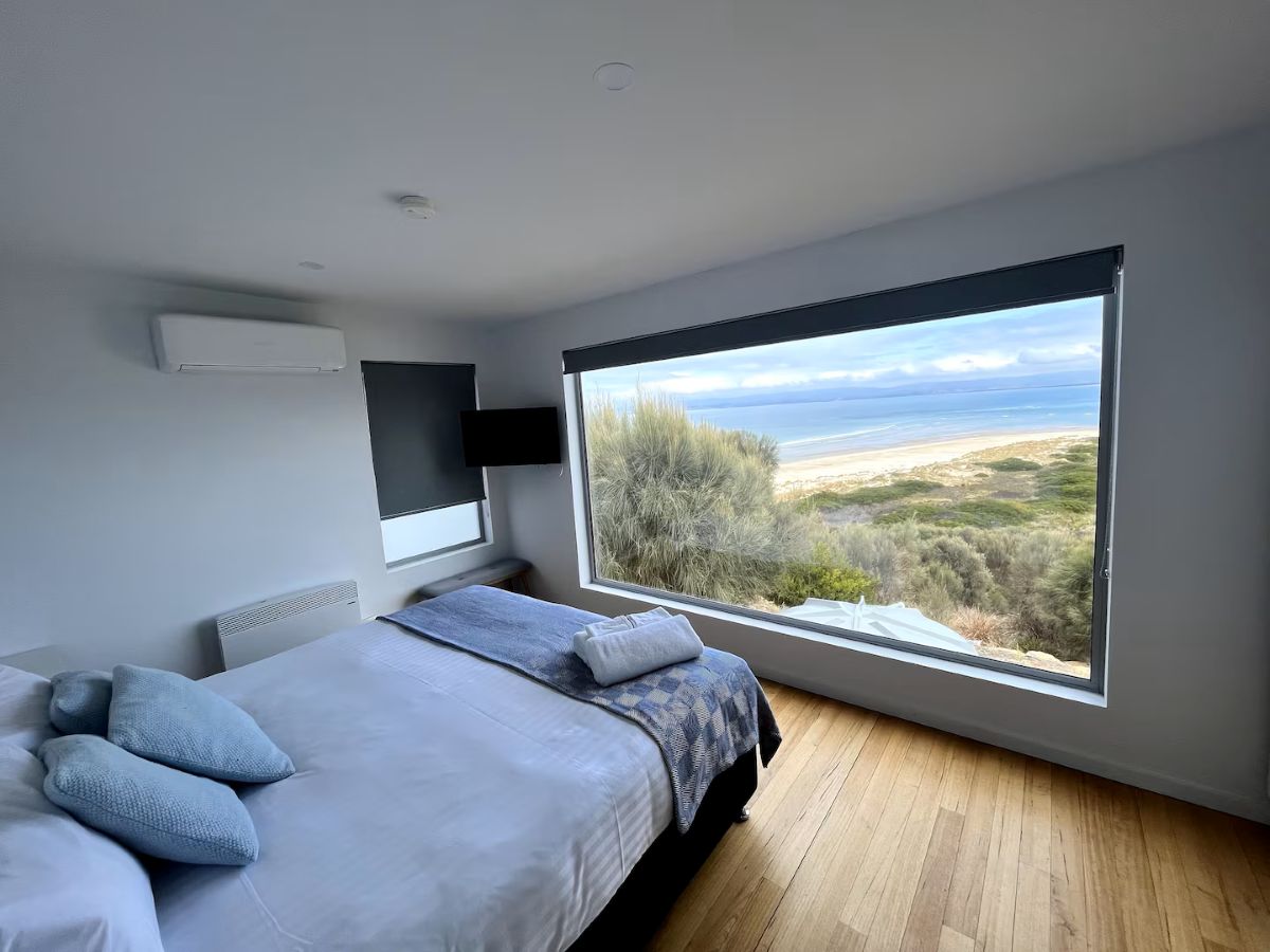 Book NowThe first architecturally designed pod includes a fully equipped kitchen, dining & lounge room. All of these spaces have majestic views of the famous Sandpiper Beach and Great Oyster Bay. You can relax on the huge couch that overlooks the water or enjoy some of the local wines on either of the three decks. The second pod includes three generous size bedrooms and a large bathroom.