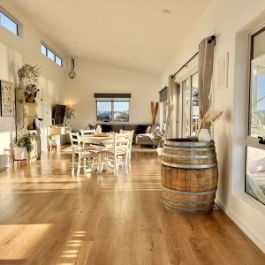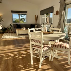 Both deck spaces are beautiful sun traps which we’ve designed with comfort in mind, each deck has a spacious outdoor daybed for either a morning coffee breathing in the fresh coastal air and basking in the glorious morning sunshine. Whilst off the Master bedroom is another private deck space with a large daybed, picnic seating and space to sit back and soak up the last of the afternoon sunshine with a glass of local east coast Tasmanian wine, reflecting in the serenity.  Swanwick runs parallel with Sandpiper beach with access only a 2 minute walk in either direction bringing adventure to your doorstep.